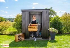 Cet abri de jardin de la marque Habrita propose une surface utile de 8,64 m² idéale pour le rangement d’outils et de matériel de jardinage. Il pourra même faire office d’abri à vélos, accueillir vos poubelles ou encore du petit mobilier de jardin. Sa double porte vitrée de 160 cm de large vous permettra en effet d’y entreposer des équipements relativement encombrants, en plus d’assurer un accès facilité à l’intérieur de l’abri.
