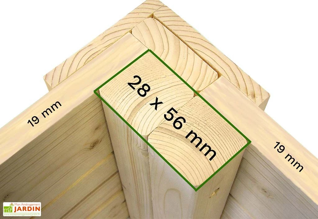 Fabriqué en bois de sapin, ce cabanon de jardin dispose de parois qui profitent d’une protection contre les intempéries et autres agressions extérieures. Il est recommandé de traiter l’intérieur de l’abri avec du vernis à bois à pores ouverts afin de le protéger contre l’humidité. A noter que le bois utilisé pour la conception de cette cabane de jardin est certifié FSC, ce qui indique qu’il provient de forêts gérées dans le respect de l’environnement.