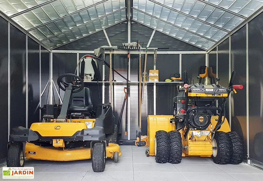 La double porte dispose d’un seuil bas pour entrer et sortir facilement de l’abri même avec une tondeuse ou un équipement encombrant.