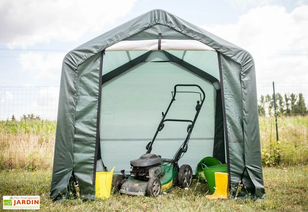 L’abri de jardin en toile de chez Habrita permet de stocker votre matériel tout en le protégeant. Il peut accueillir une tondeuse, des outils emmanchés, des vélos, une moto ou encore des sacs à charbon de bois, des pellets, du bois de chauffage, etc.
