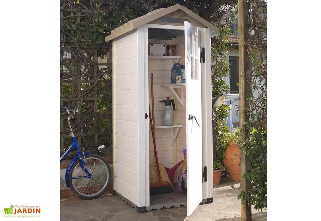 L’abri de jardin Evo 80 Garofalo est fabriqué en Italie. Il est en PVC et possède des parois d’une épaisseur de 20 mm. La toiture de l’abri est en ABS, un plastique résistant aux chocs et traité anti-UV. Elle dispose de 2 pentes et possède des reliefs imitant les tuiles.