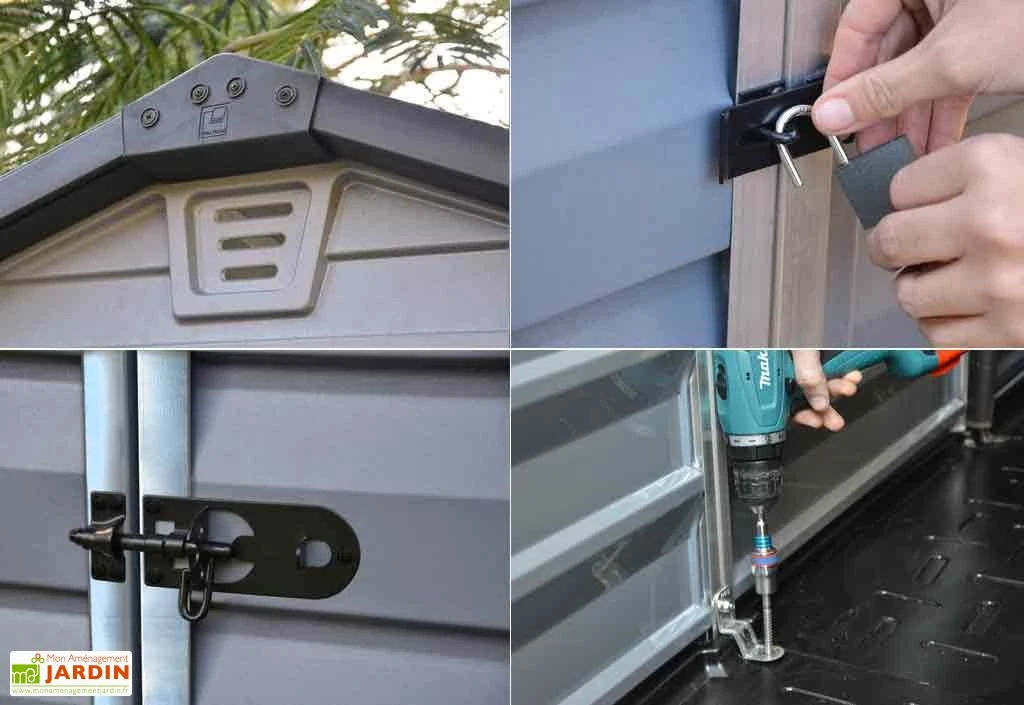 Votre abri de jardin en polycabronate Skylight de chez Palram-Canopia est un abri de haute qualité et très résistant aux UV et aux intempéries. Innovant, son toit en polycarbonate laisse passer la lumière naturelle et vous permet de voir l’intérieur de votre abri sans éclairage. Pour plus de sécurité, votre abri est équipé d’un loquet sur lequel vous pourrez insérer un cadenas.