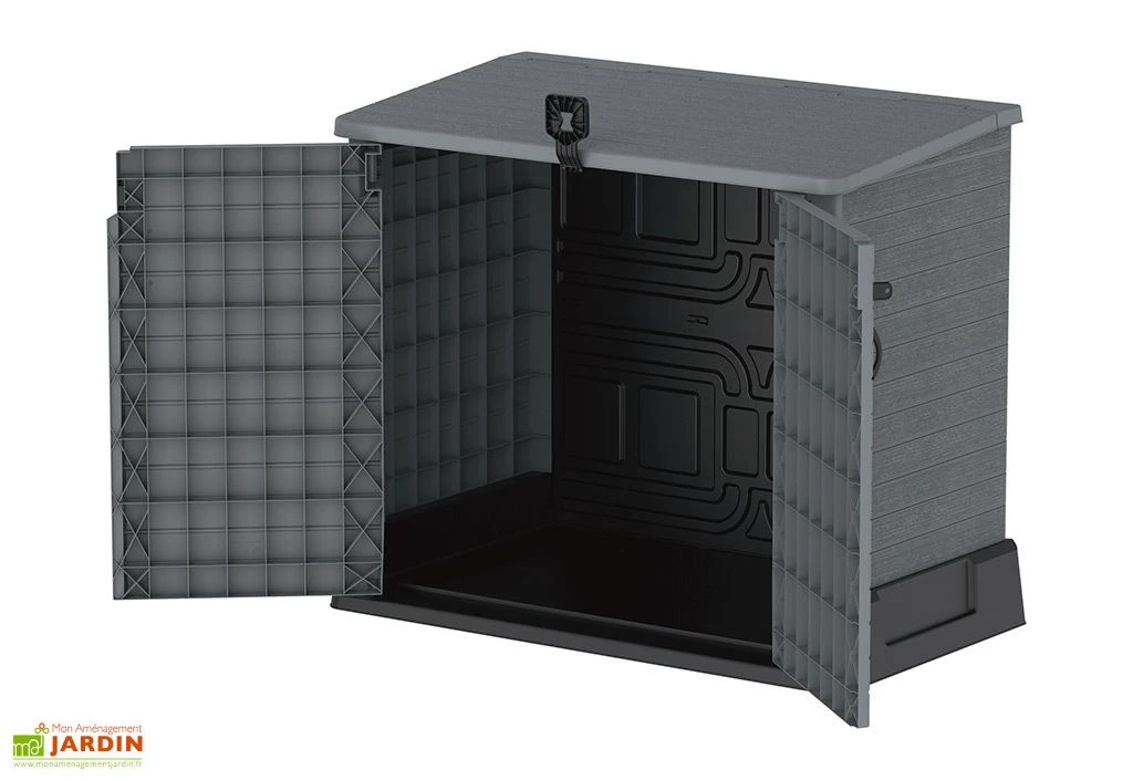 Son ouverture s’effectue par le biais d’une double porte pouvant se verrouiller à l’aide d’un cadenas, qui n’est pas inclus, ou bien par le couvercle situé sur le dessus de l’armoire de jardin.