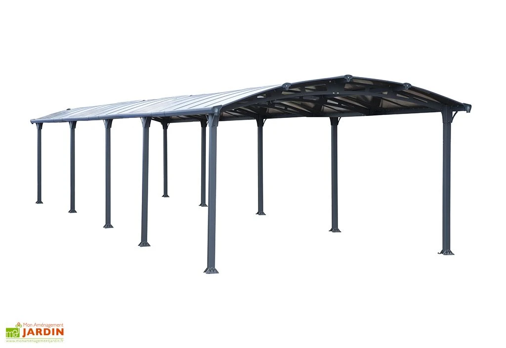 Le carport Arcadia 10600 de chez Palram-Canopia offre suffisamment d’espace pour protéger deux à trois voitures des intempéries, mais également d’une surexposition au soleil et à ses rayons. Il affiche en effet des dimensions de 3,59 x 10,72 m, pour 2,19 m de haut, et couvre une surface de 38,5 m². Ce carport étant livré en kit, son montage devra être réalisé par vos soins.