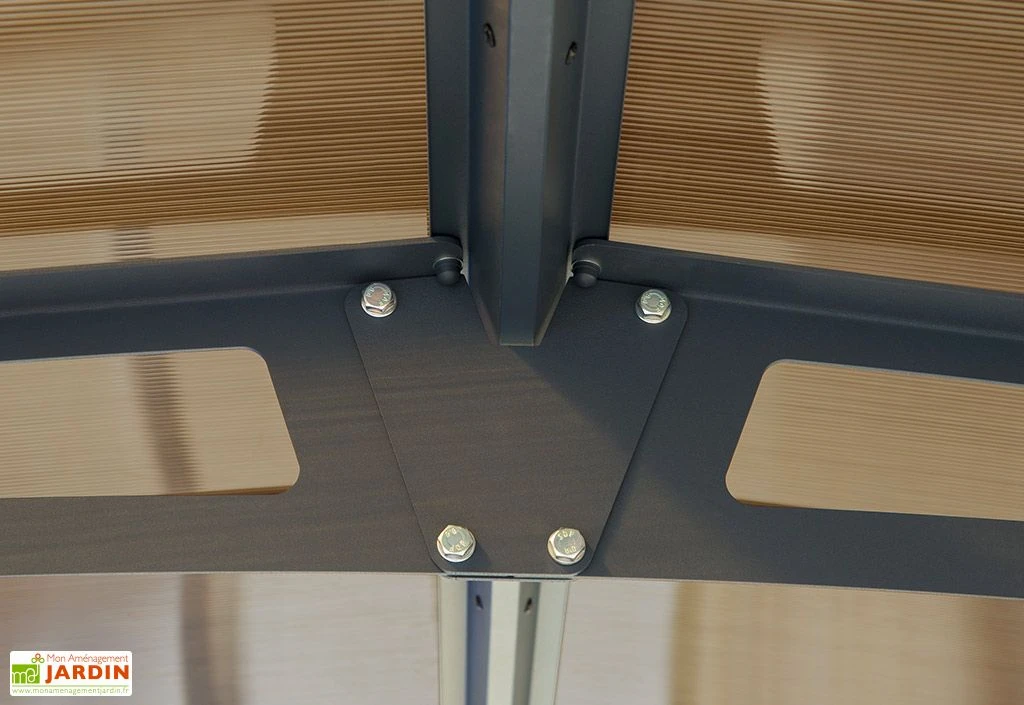 Le carport Arcadia 4300 de chez Palram-Canopia offre un espace couvert de 15,4 m² sous lequel vous pourrez stationner votre vĂ©hicule Ă l’abri des intempĂ©ries et des rayons du soleil. Conçu en aluminium (d’une Ă©paisseur de 2mm au niveau des poteaux) gris anthracite RAL 7016 avec connecteurs en acier galvanisĂ©, ce carport ne craint pas la rouille et ne demande aucun entretien particulier.Â