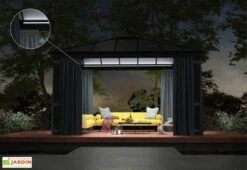 Ce carport en aluminium est mĂŞme dotĂ© d’un système de gouttière permettant de collecter l’eau de pluie afin de la rĂ©utiliser. Notez enfin que le Arcadia 6400 est livrĂ© en kit mais que son montage est grandement facilitĂ© par les prĂ©-perçages et prĂ©dĂ©coupages rĂ©alisĂ©s en amont ainsi que par le système d’assemblage des diffĂ©rents Ă©lĂ©ments.Â