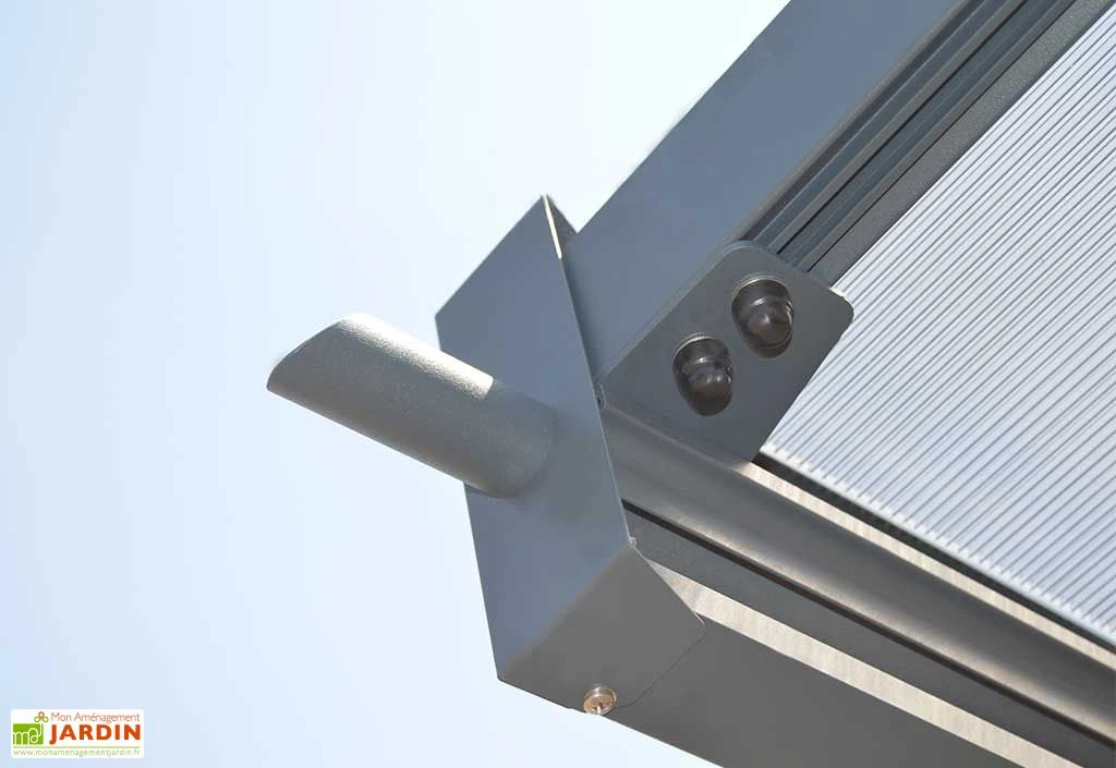 Cet abri pour voitures est doté d’une structure en aluminium couleur gris anthracite qui supporte une toiture faite de panneaux de polycarbonate. Les pièces de jonction sont pour leur part conçues en acier. Le principal avantage de l’aluminium et du polycarbonate repose sur leur grande robustesse et leur résistance aux intempéries, même sans entretien. L’aluminium est de plus insensible à la corrosion et est relativement léger, facilitant ainsi la manipulation des pièces au moment du montage.