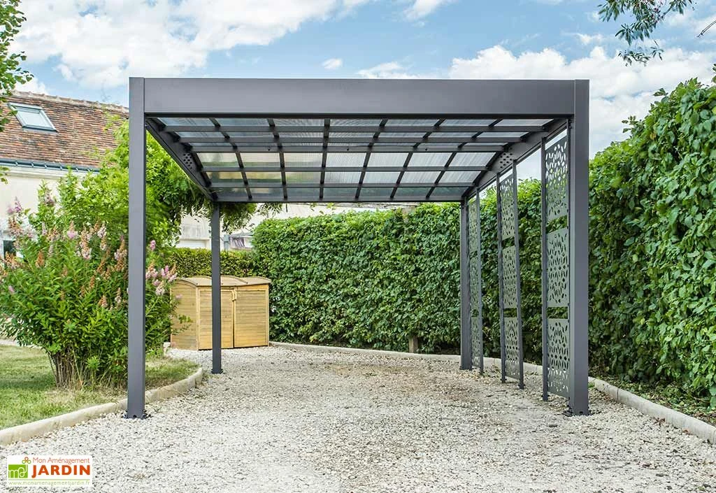 Le carport Libeccio de chez Trigano est livré accompagné de trois brise-vues permettant non seulement d’habiller la structure afin de la rendre plus esthétique, mais également d’apporter une protection contre le vent ou les rayons du soleil. Totalement modulables, ces claustras pourront être installés du côté de votre choix et agencés à votre guise. Ils sont conçus en acier et chaque panneau mesure 79 x 214 cm. La structure du carport est pour sa part fabriquée en aluminium, un matériau très résistant qui ne craint pas la rouille, le tout sans exiger d’entretien.