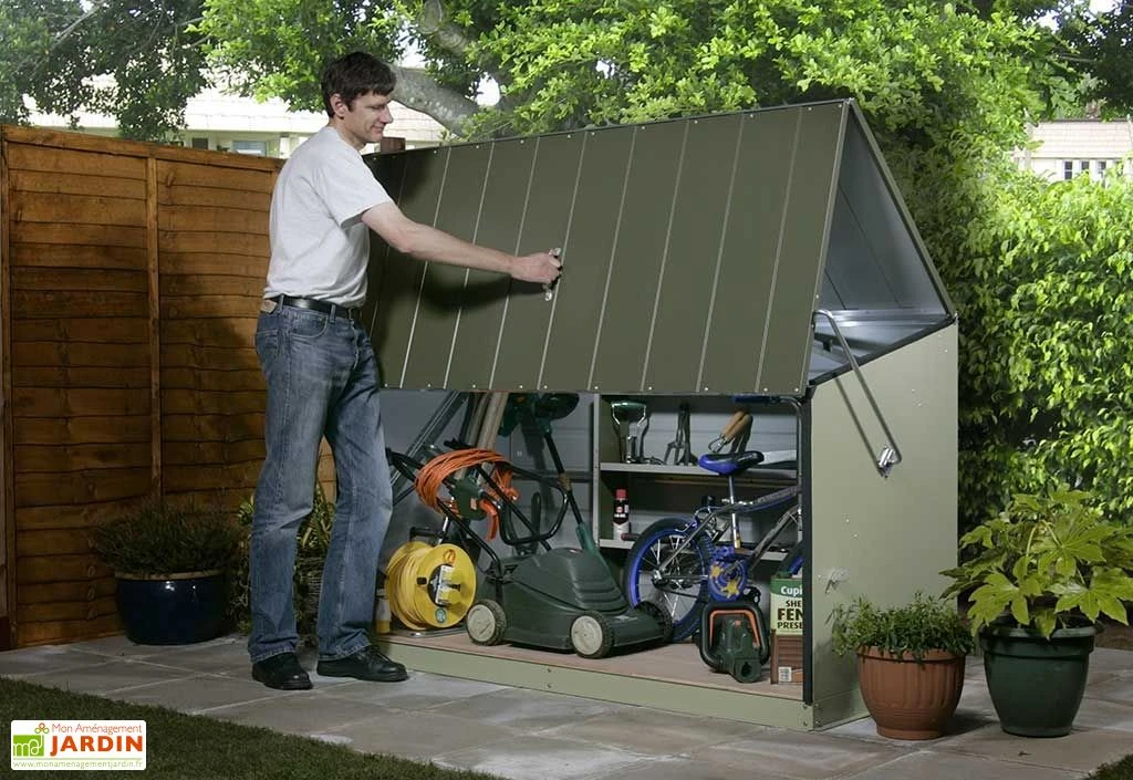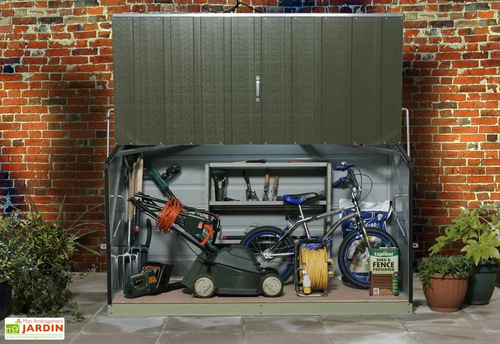 Votre coffre de rangement Storeguard Vert de chez Trimetals de dimensions extérieures : 1,96 x 0,89 x 1,13 m (l,l,h) est en acier galvanisé gainé PVC. Vos objets encombrants trouveront facilement leur place dans le coffre de rangement Trimetals de très grande qualité. Les dimensions intérieures sont : 1,80 x 0,84 x 0,89/1,09 m (l,l,h). L’ouverture du coffre est assistée d’un ressort pour une ouverture sans effort (système breveté). Toutes les pièces de fixation du coffre sont en acier inoxydable. Le coffre se fixe au mur ou au sol depuis l’intérieur du coffre et peut se fermer avec un cadenas (non fournis). Il n’y a pas d’entretien, il résiste au feu et ne se dégradera pas, même près de l’océan. Tout ce dont vous avez besoin pour fixer le coffre est livré avec. Le coffre de rangement est garanti 25 ans par Trimetals.
